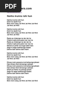 Nanha Munna Rahi Hun Lyrics English